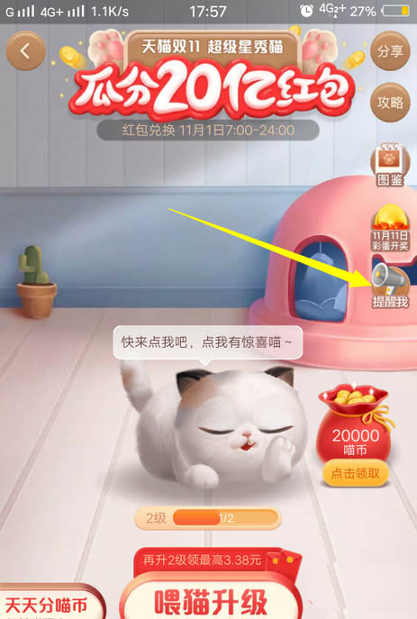 很多人在玩支付宝瓜分20亿红包游戏,事多的时候总是忘记收,浪费了,可以设置收喵币提醒吗?当然可以,下面我们就来看看详细的教程。