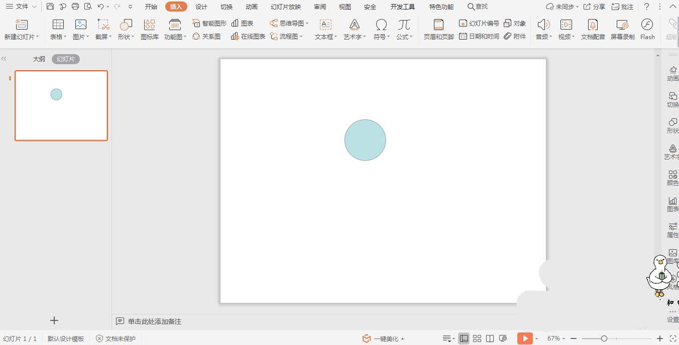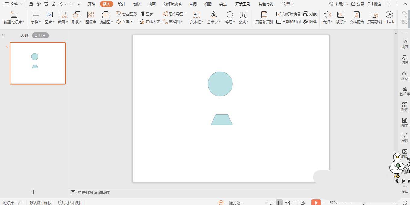 3、接着插入一个梯形,放置在圆形的下方,并且与圆形保持一定的距离。