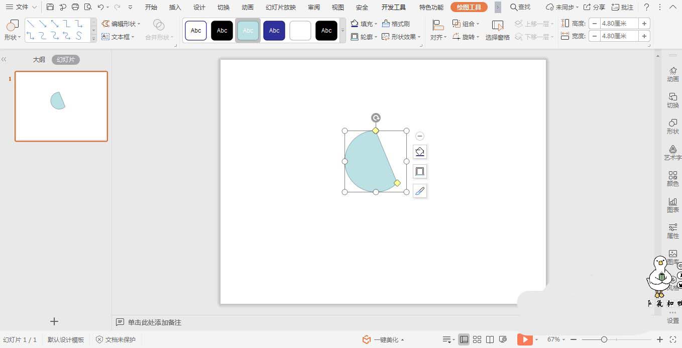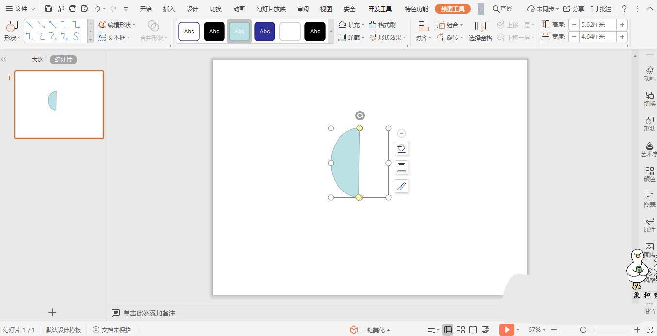 2、点击弦形上的黄色小圆点,调整其形状和大小。