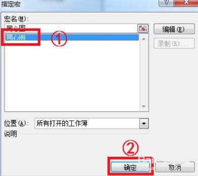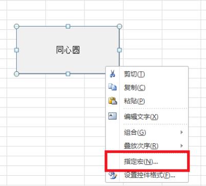7、选中同心圆控件,然后点击鼠标右键,选择指定宏。