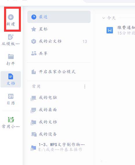 2、进入wps2019主页面后我们点击上方的新建按钮