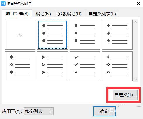 5、我们点击下拉菜单里面的自定符号,就会弹出一个窗口我们再次点击下面的自定义