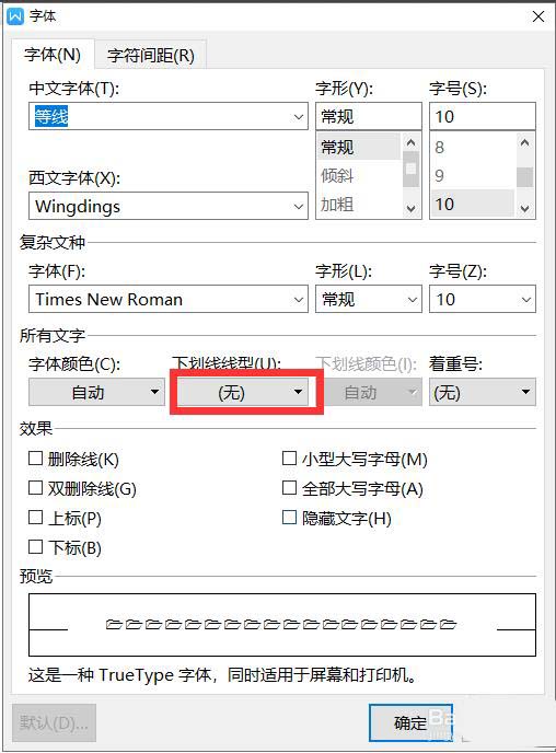 6、最后我们在弹出的窗口里面点击字体按钮,就会弹出字体修改窗口。在里面我们点击下面的下划线线型就可以设置了。