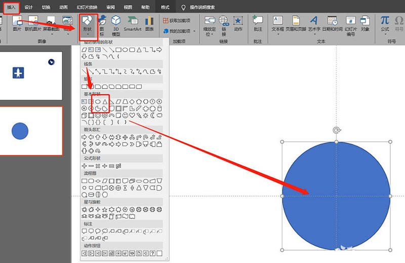 1、插入圆形 。如图: