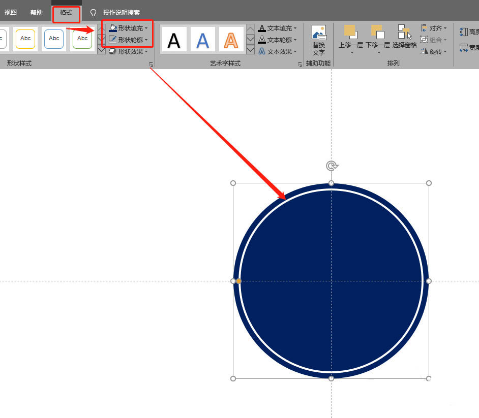 2、插入环形,并设定格式。如图: