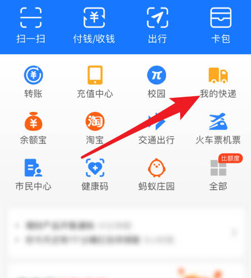 2、进入到支付宝页面后,我们找到【我的快递】入口,点击它