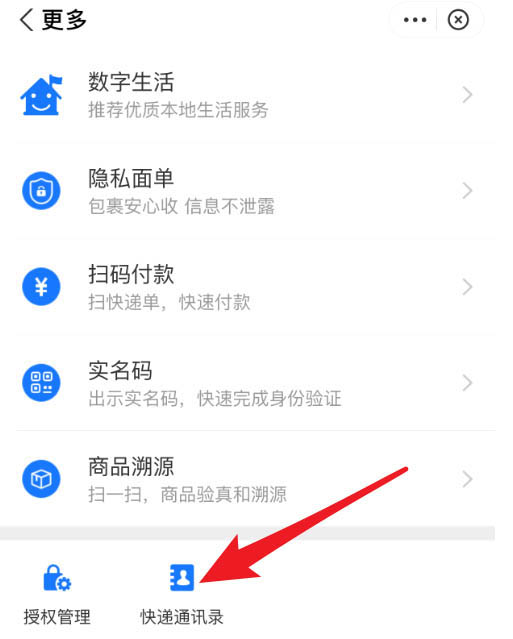 4、进入到更多页面后,我们找到【快递通讯录】,点击进入它