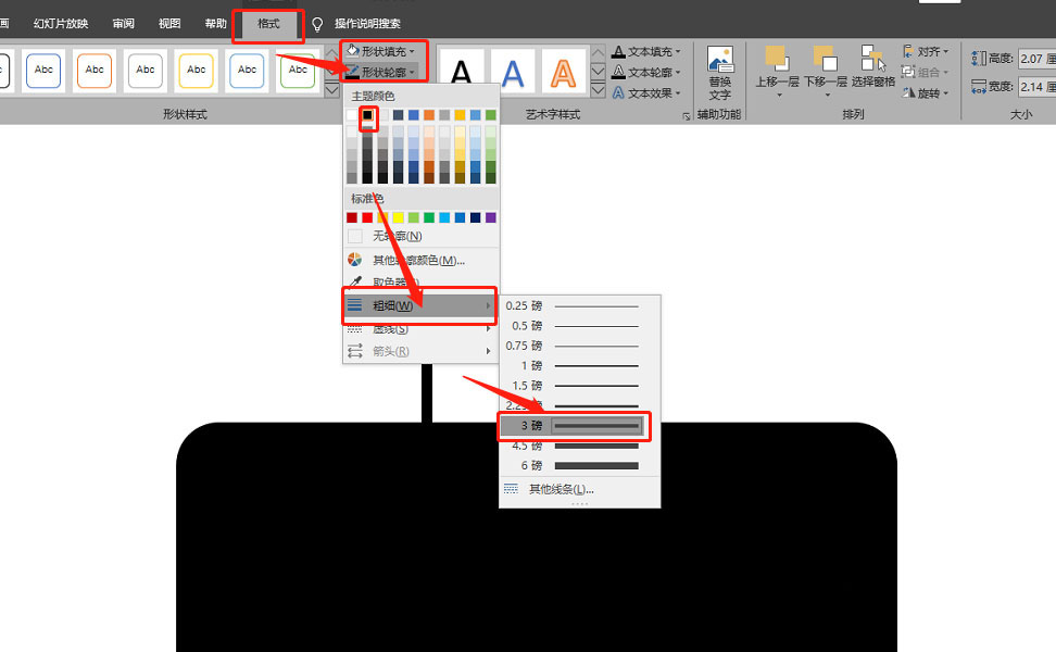 5、设定矩形格式:无填充,黑色边框。如图: