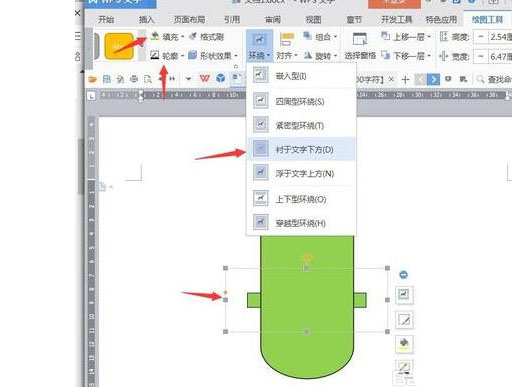 2、绘制形状,设置【向左旋转90度】,【填充】设置成绿色,【轮廓】设置成黑色