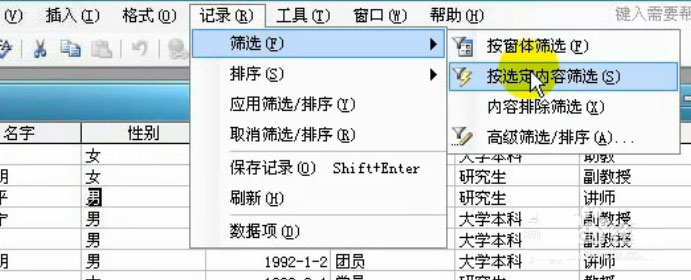 Access数据库怎么按选定内容筛选记录?