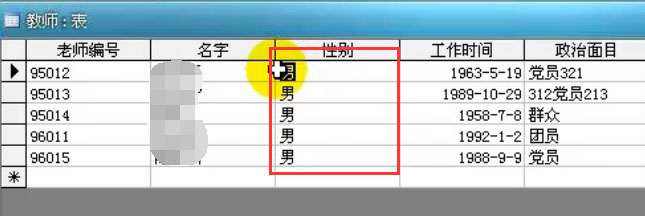 5、选择好了以后,你就会看到Access已经帮我们把性别为男的数据筛选出来了,如下图所示