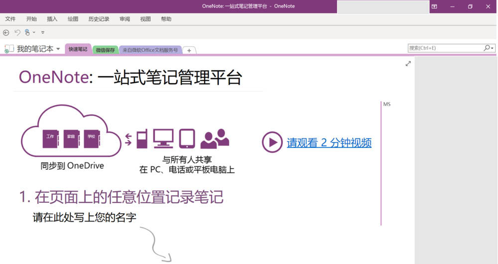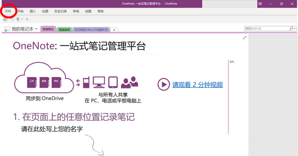 1、首先,打开OneNote2016,我们会看到如下的主页面:
