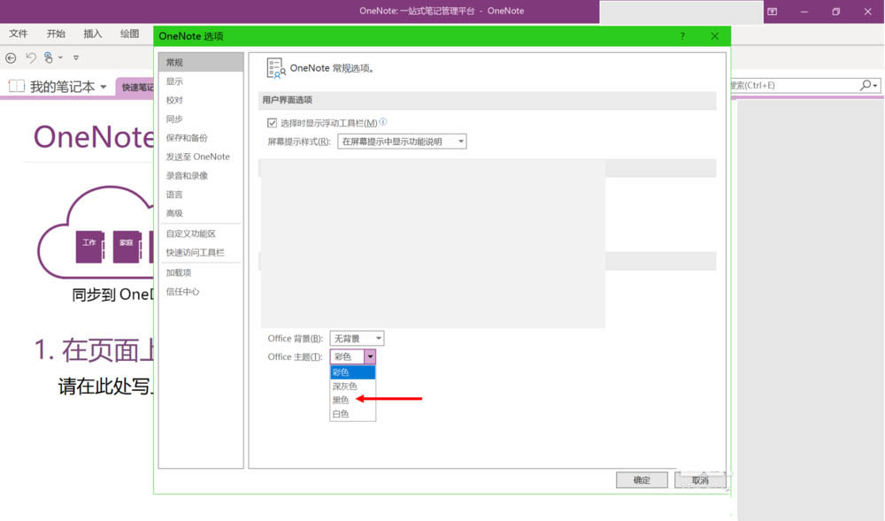 OneNote2016黑色主题怎么使用?