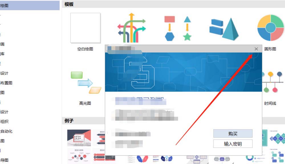 1、首先我们进入亿图,很多时候试用期已经过了,所以我们直接点击关闭这个提醒,接着点击新建图像