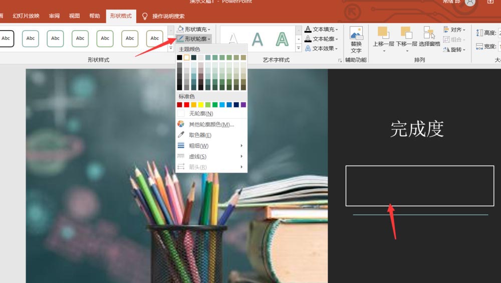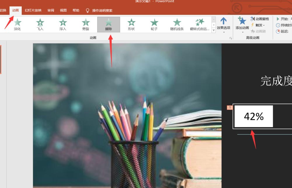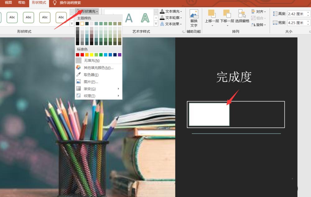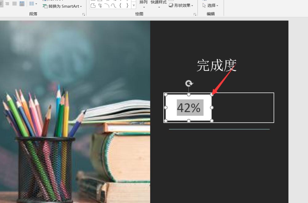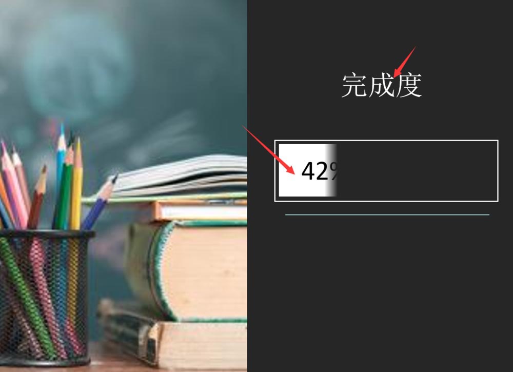 7、接着我们在这个矩形中输入完成度42%即可。