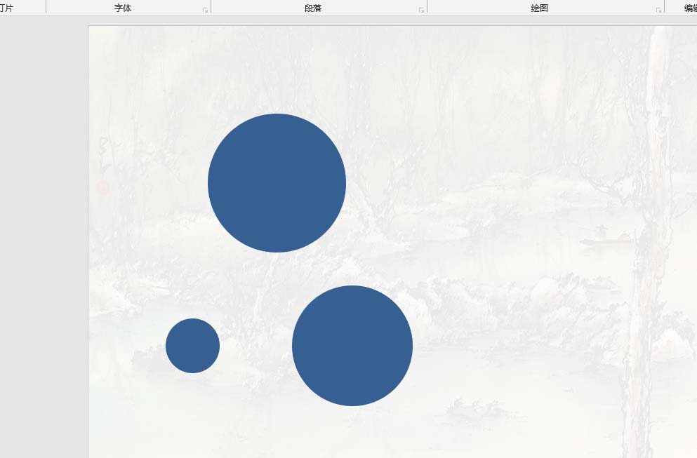 3、调整三个圆形的透明度,将较小的两个圆调整形状和位置;