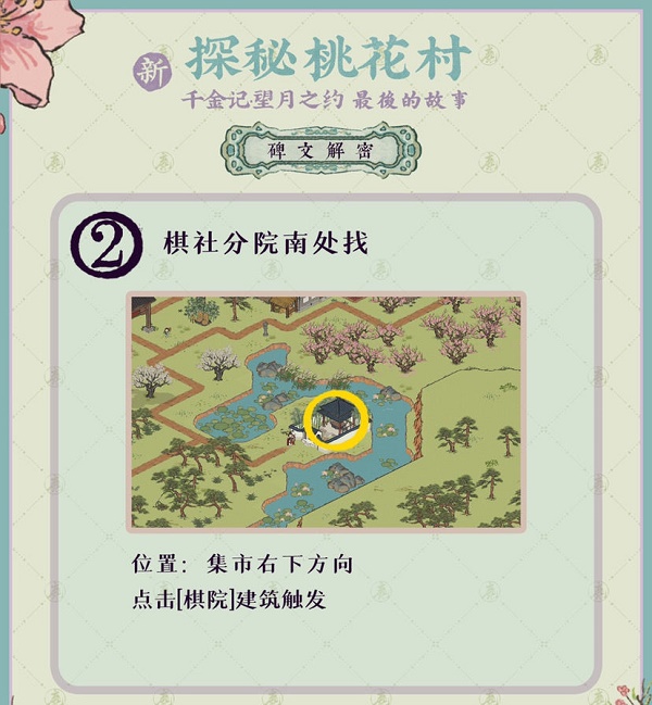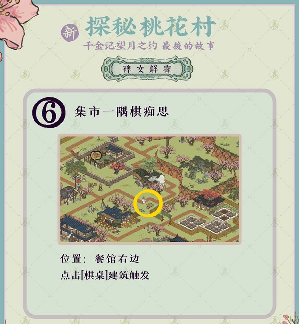 桃花村最后的故事是江南百景图近期上线的一个探险任务,那么这个任务该怎么解呢,下面就一起来看看具体的攻略分享吧,感兴趣的小伙伴千万不要错过哦。