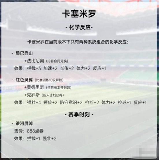 个人非常推荐选这个,搭配上线送的莫德里奇和新人计划送的克罗斯,能组一套化学反应。中场放这三位很好用进可攻退可守,很长一段时间不用换人。