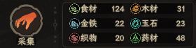 点击地块,采集键旁边的素材数字,可以让你看到这里适合采集哪些素材。数字越小,采到的东西越少。