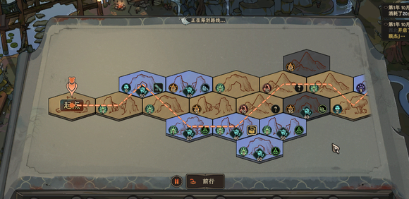 系统会自动给你规划一条路线,想要避开哪个地块,可以单击要改的地块,选择赋元,地图上带有“?”的地块,一般是会发生战斗的地块。单击前行或单击空格键,可以开始奇遇,注意奇遇开始后无法更改路线。