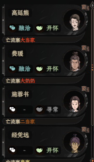 乞丐身份的NPC,拥有特殊互动“施舍银钱”,可以随便给他花点钱。并且,如果度过时节时,你当前所处的地块有乞丐NPC,那么他们会主动向你乞讨。