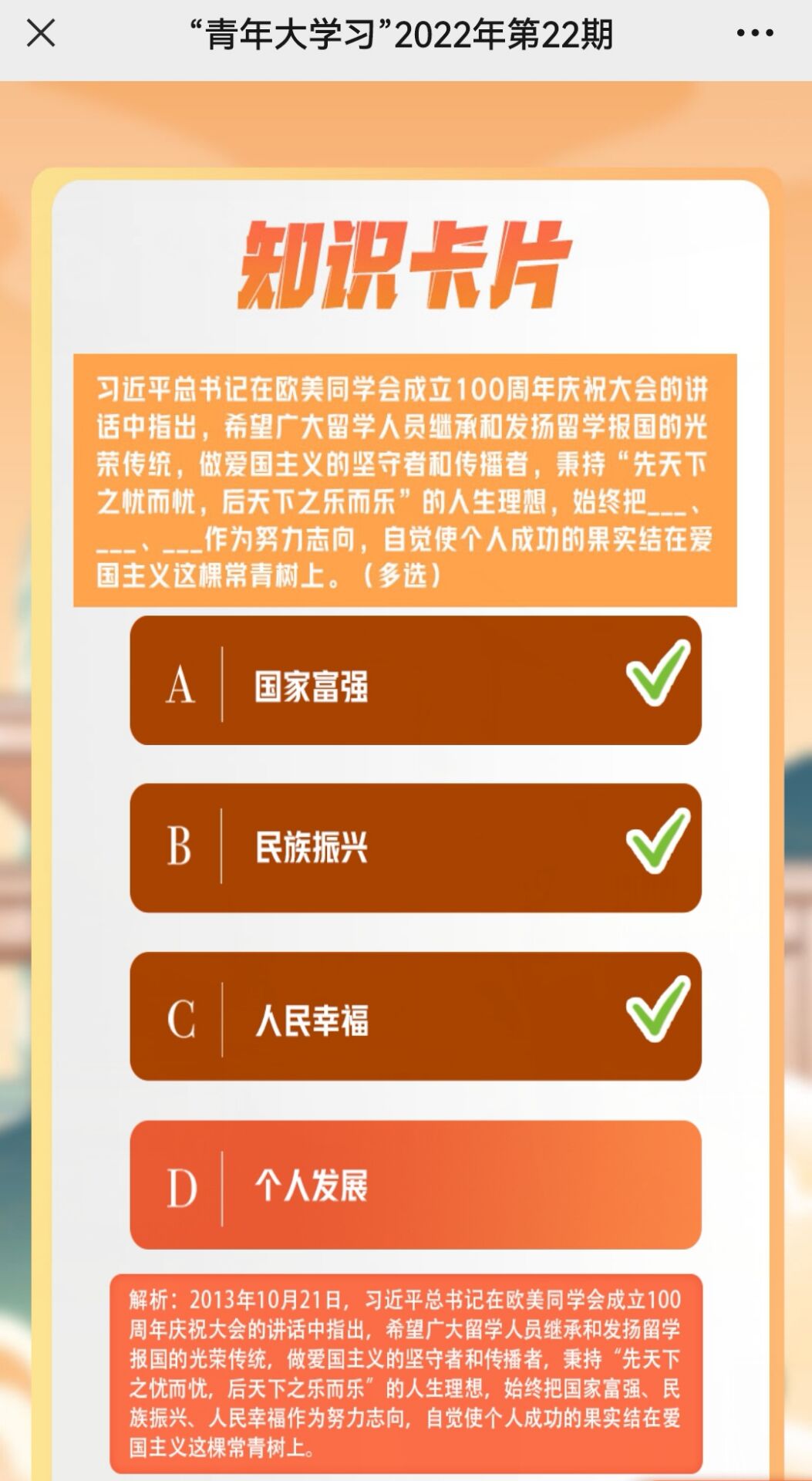 青年大学2022年第22期答案最新截图-青年大学习2022年第22答案分享