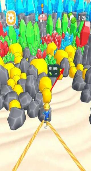1、进入游戏后首先在矿洞界面仔细观察不同区域的矿石分布,点击高价值矿脉开始开采,拖动角色将采集到的矿石运送到仓库进行出售以获取初始资金。