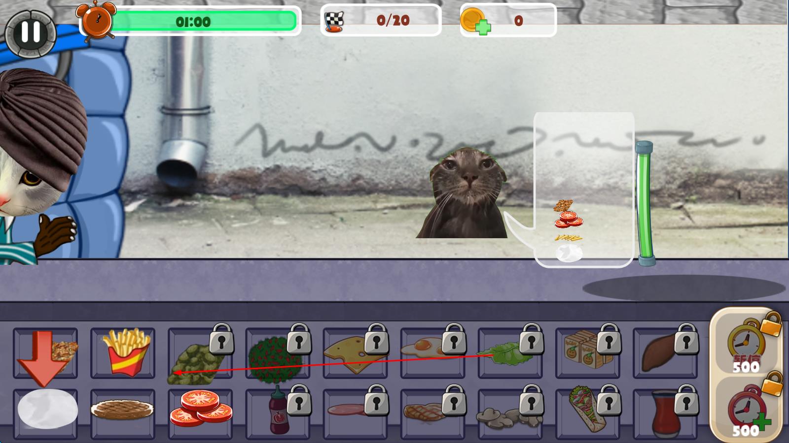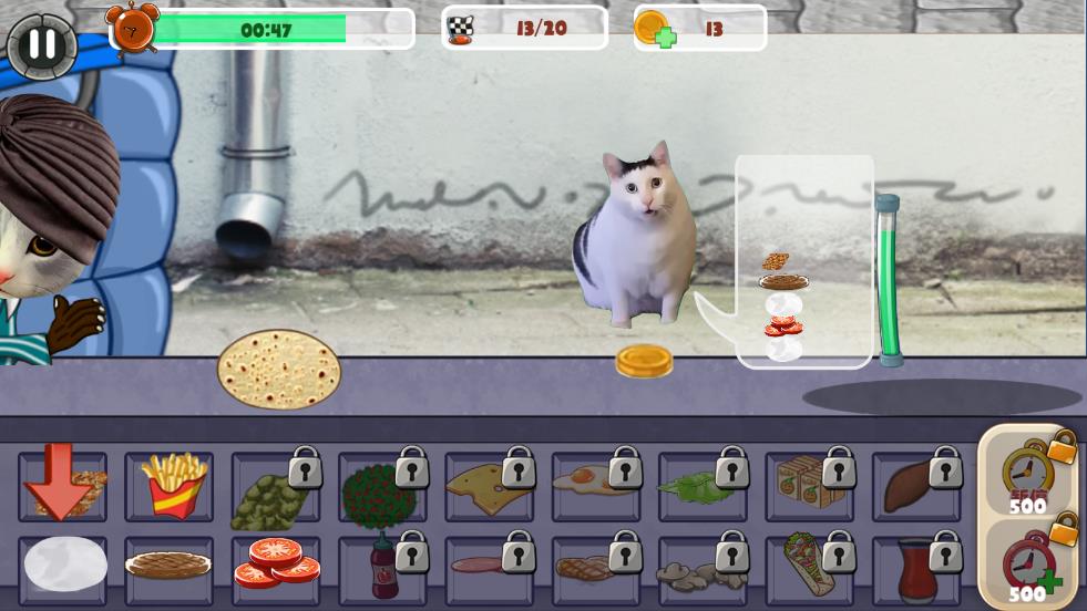 3、配方解锁机制:通过关卡挑战解锁更多汉堡配方,体验不同制作流程,用多样口味满足猫猫顾客的需求。