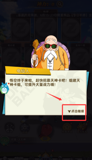 1、点击右下角点击继续按钮,查看天神卡招募活动。