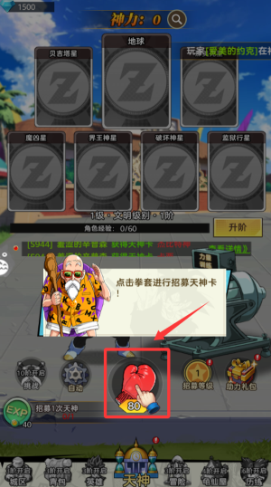 2、点击80神力拳套按钮,消耗神力招募天神卡。
