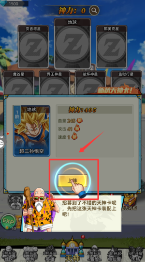 3、点击上阵按钮,将超三孙悟空加入战斗阵容。