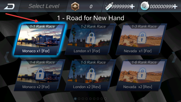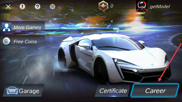 1、主界面点【Career】生涯模式,进入选关,选【1-1Rank Race】新手赛道,开启竞速。