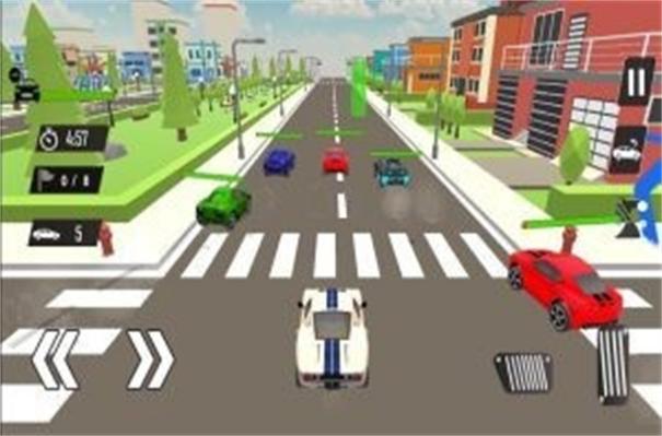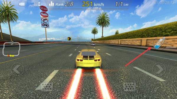 2、赛道上用虚拟按键控方向、油门,遇弯道提前刹车、漂移,保持高速,超对手。