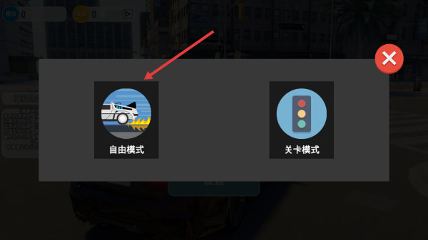 1、点击【开始游戏】,选【自由模式】,在城市街道随意驾驶,熟悉操作。