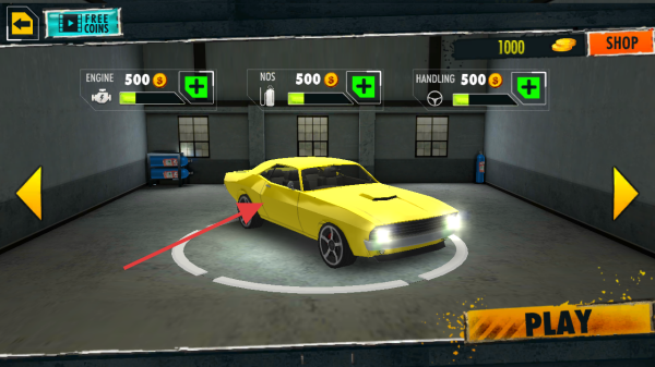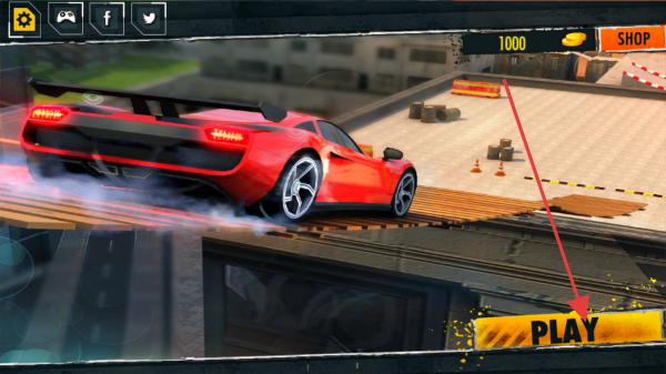 1、在【城市特技飞车】启动界面,点击显眼的【PLAY】按钮,正式进入赛车游戏的挑战环节。