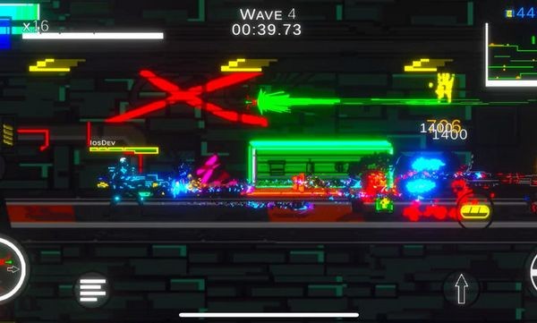 1、操控角色在霓虹场景移动,躲避敌方攻击,利用武器反击,熬过每轮浪潮。
