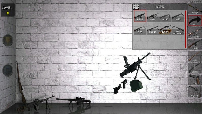1、核心操作围绕枪械拆装展开,需要记住每把武器的零件组成和组装顺序,通过反复练习提高操作熟练度。