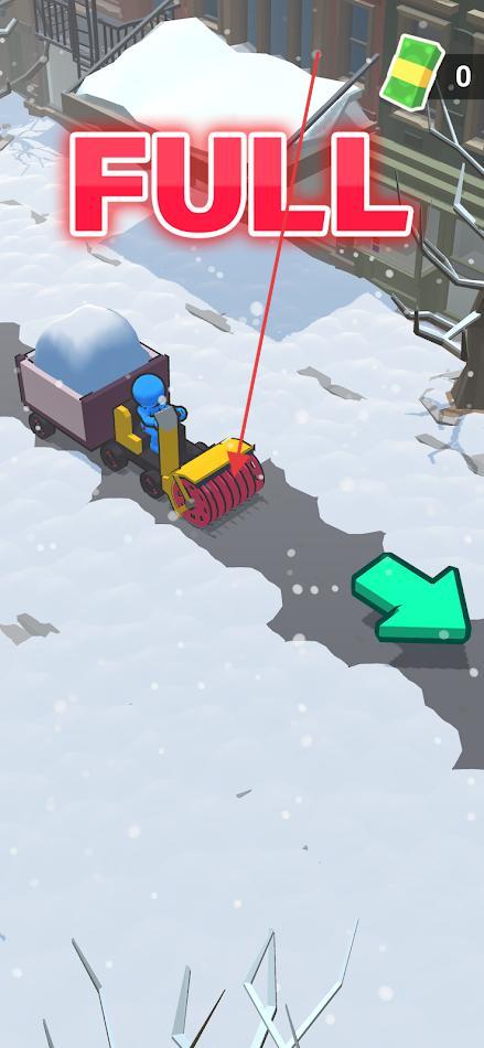 2、满“FULL”就倒!看到红大字,跟绿箭头,2秒卸雪,空车再清,效率+30%,超赚,早解锁新车型。