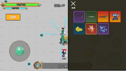 3、通过虚拟按键操控角色施展法术,击败各类妖兽获取修炼资源。
