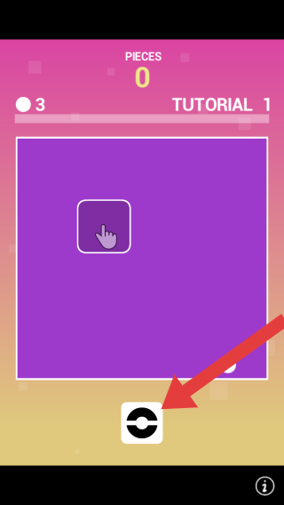 3、实体信息有“PIECES0(碎片数量为0)”、“TUTORIAL1(教程1)”,还有操作指引(紫色区域内的手指图标)、下方带箭头的圆形图标(可是功能按钮)。