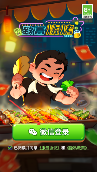 1、登录开局:微信登录,解锁烤藕片等初始菜品,开启烧烤摊经营。