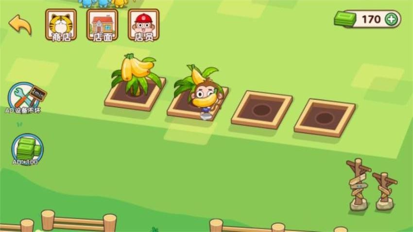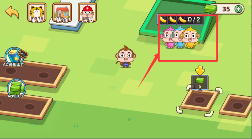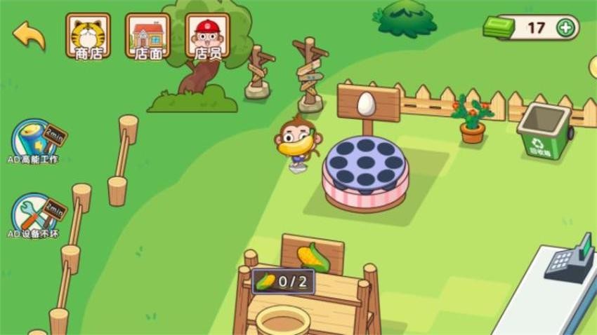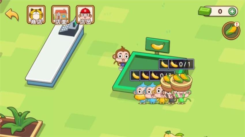 2、雇佣小猴子员工帮忙整理货架和收银,节省操作时间,让你能更专注于进货管理和农场建设等重要事务。