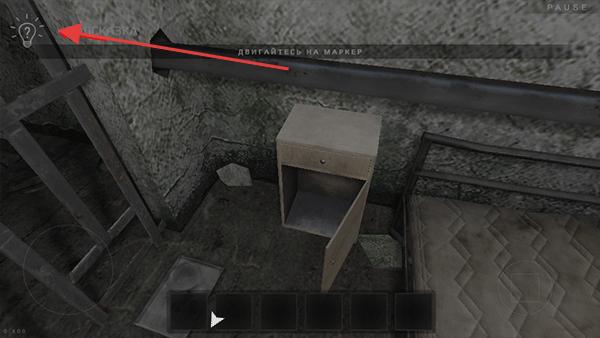 3、遇到俄语提示(如“ПОДСКАЗКА”),点击获取线索,根据提示检查场景(如床头柜),挖掘关键信息逃生。