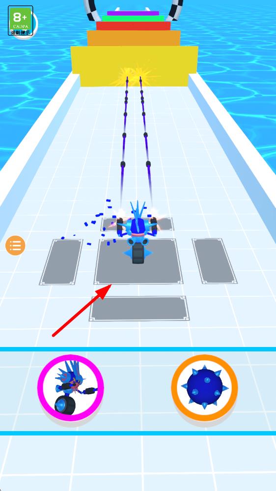 1、进入局内后操控初始形态的玩具战士在赛道奔跑,点击屏幕触发变形,应对首批出现的基础障碍。