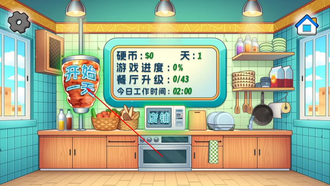 3、点“开始一天”,开启当日经营,接待顾客,完成订单,积累进度。