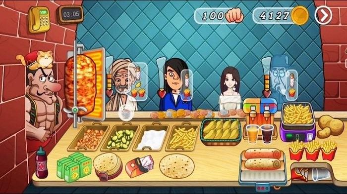 1、菜式逐步解锁:玩家可逐步解锁烤肉卷饼、蔬菜沙拉、薯条等多样菜式,在经营过程中不断丰富菜单,满足顾客多样化的口味需求,感受解锁新菜品的成就感。