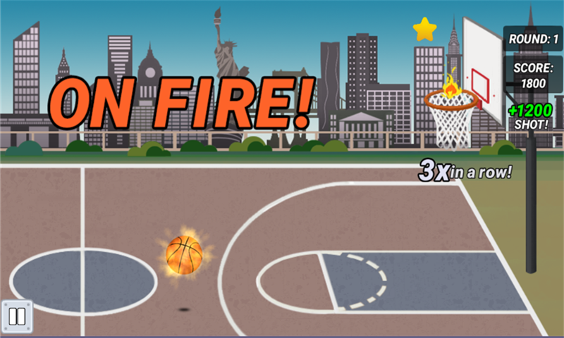 3、连续投篮命中,触发【ON FIRE】状态(篮球带火),此时投篮可获更高分数(如+1200),冲击关卡得分纪录。