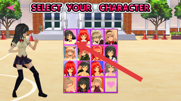 2、画面展示多个动漫风格女角色,可用于高校格斗的角色选用,背景是校园操场场景。