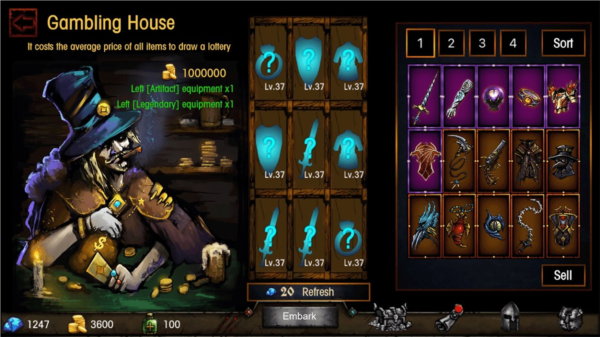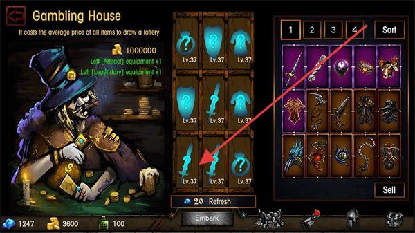 1、赌屋玩法:进入“Gambling House”,用金币抽取装备,优先选等级匹配(Lv.37)、属性适配角色。