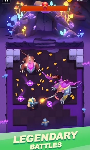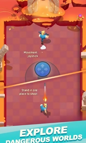2、战斗中途,通过虚拟摇杆控制移动方向,点击攻击键发起射击,面对不同房间的怪物,需及时切换攻击模式以应对其特性。